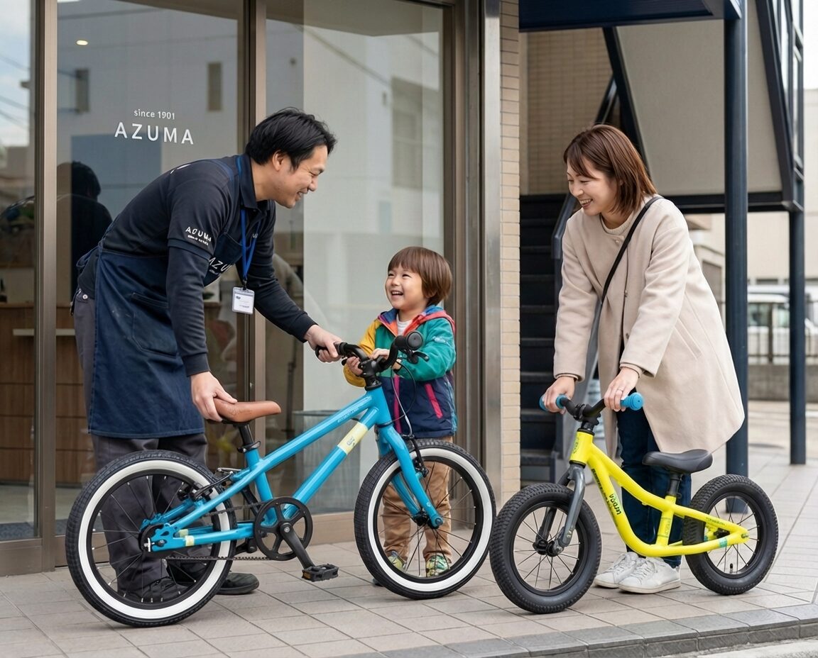 (バイク交換の際は、東商会(埼玉県川口市)へキッズバイクをお持ち込みいただく形でのご対応となります。)